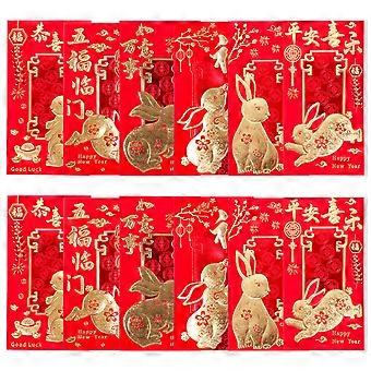 These are red pockets which allow you to put money inside. The rabbit pattern design can surely give children a big surprise. It can also be functioned as a gift for the coming New Year and festival. With bright color and rabbit patterns, these bags could add strong festive atmosphere. Features - -Material:Paper - Size: 20.00X9.00X0.10cm/7.86X3.54X0.04in -Envelopes with zodiac rabbit pattern design are unique and inherit the traditional culture of Chinese. -Not only as a gift, but also as a collection of art, or decoration for your Spring Festival party. -With fine workmanship, it is not easy to be torn off. These red envelopes are lightweight, easy to carry with you. -Put some cash into the red envelopes as a gift for new year, birthday, baby shower, etc. -Wide range of application, they are suitable for Chinese New Year, or birthdays, engagements and other festivals. Package list: 36 x red envelopes