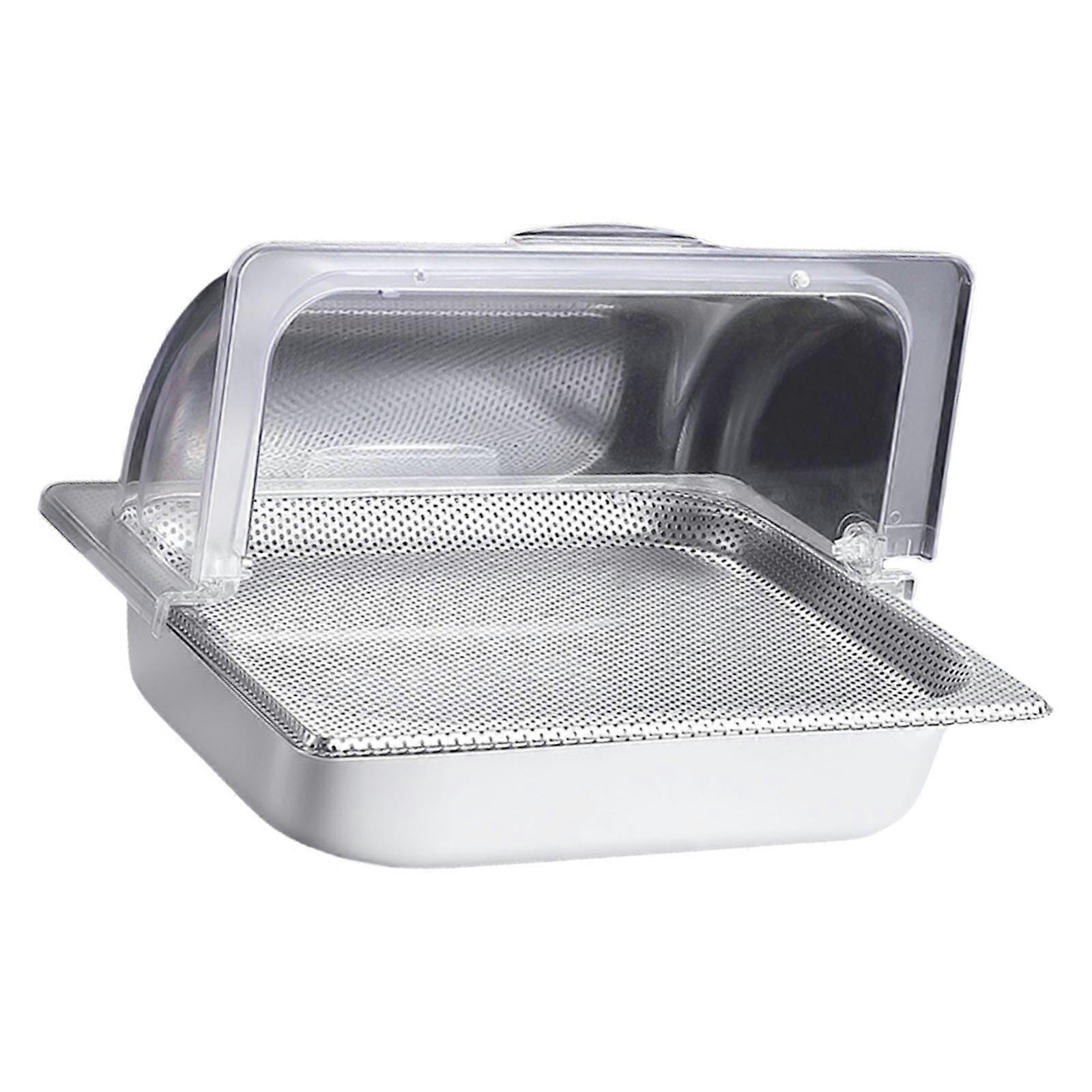 Features: Premium stainless steel construction ensures durability and corrosions resistance, while this clear roll top cover allows easy visibilities and keep content freshness. Features multiple compartments for organized serving, a secure cover to prevent spills, and effortlessly cleaning for repeated use. Ideal for restaurant owners, buffets operators, and home entertainers seek a hygienic, space efficient food presentation solution. Perfectly suited for commercial kitchens, hotel banquets, family gatherings, or any event requiring organized, visually appealing food displays. The professional design accommodates large capacity and maintains optimal food temperature, making it a functional addition to any food service setups. Specifications: Component:Stainless Steel+PC Type:Base Tray+Top Cover/Base Tray+Hole Tray+Top Cover(Optional) Base Tray Size:Approx.33x27x6.50CM/13x10.62x2.55inches Top Cover Size:Approx.33.5x27x14.50CM/13.18x10.62x5.7inches Hole Tray Size:Approx.33x26CMx2CM/13x10.26x0.78inches Package Includes: 1Set Stainless Steel Food Display Tray note: Please allow 1-2cm error due to manual measurement. Please make sure you do not mind before you bid. Due to the differences between different monitors, the picture may not reflect the actual color. Thanks!