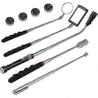 Retractable Magnetic Pickup Kit 360-Degree Rotating Adjustable Inspection Mirrors and Retractable Flexible Flashlights