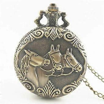 Retro Large Size Three-headed Horse Carriage Quartz Watch Alloy Case Round Dial Non-waterproof Universal Alloyrap General Sz