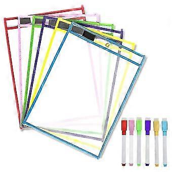 Reusable Dry Erase Pockets, 6 Pack Reusable Dry Erase Sleeves, Colors Sheet Protector, Dry Erase Po