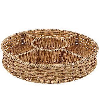 Round Bread Serving Basket 2pcs Handcrafted Tray for Snacks with Multi Grid Design