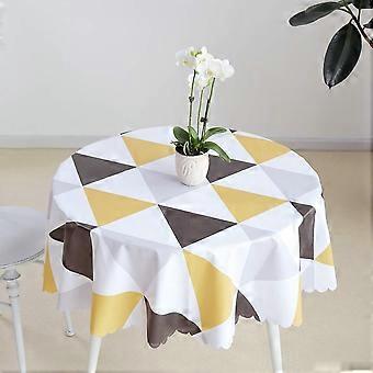 Round Tablecloths PVC Wipeable Tablecloth Stain-Proof Waterproof Table Cloth Easy to Clean Triangular Lattice Tablecloth Yellow, Round 140cm