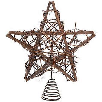 Rustic Rattan Christmas Tree Topper with Spring Support – Sturdy Xmas Decoration for Home, Office, Store & Holiday Ambience