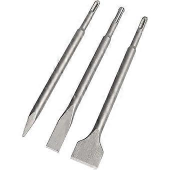 SDS Chisel Set, 3-Piece Chisel Set 22-25 cm (Concrete, Masonry, for Light Drilling and Impact Hammers) Pointed and Tile Chisel
