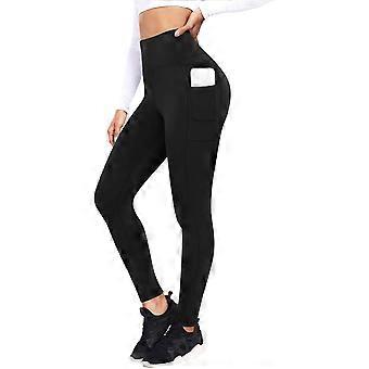 Women's Lined Thermal Leggings High Waist Thermal Trousers Winter Warm Sports Leggings Tights Yoga Pants with Pockets Burgundy S