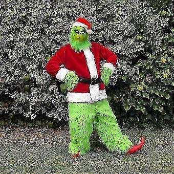 Adult Grinch Cosplay Outfit with Red Santa Costume and Face Mask