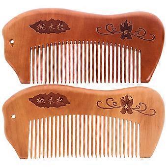 Peach Wood Comb Fine Tooth for Head Massage Hair Care Beard Mustache Anti-static Light Brown
