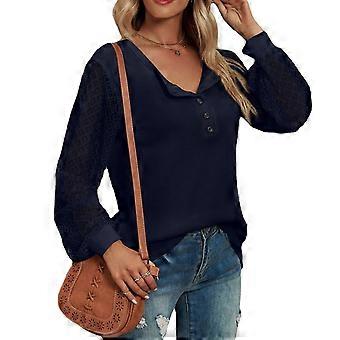 Womens O Neck Lace Crochet Shirts Long Sleeve Button Casual Tunic Blouses Tops Brick red XL.