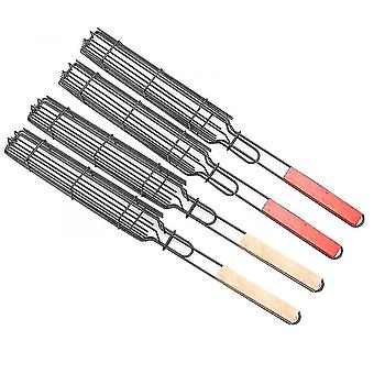 Cookware Sets 4pc Hot Dog Grill Cage Sausage Grill Barbecue Clip Mesh With Wooden Handle Bbq