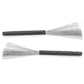 2pcs Drum Brush Rubber Handle Steel Wire Bristles Retractable Portable Drum Stick Brush