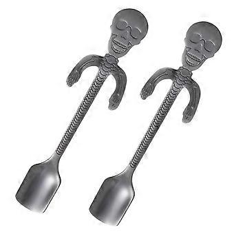 Creative Skull Stainless Steel Coffee Spoons for Dessert 2Pcs Black