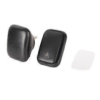Self-Powered Wireless Black Doorbell No Wiring UK Plug 200 Coverage