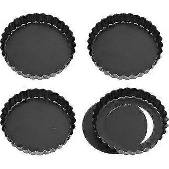 Set Of 4 Mini Quiche Tins With Loose Base, 12 Cm Small Tart Moulds, Non-stick Baking Moulds With Removable Base (black)