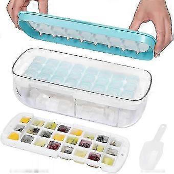 Silicone Ice Cube Tray With Lid And Bin, 48 Grids Press Type Ice Cube Molds Comes With Storage Bin And Ice Scoop Aqu