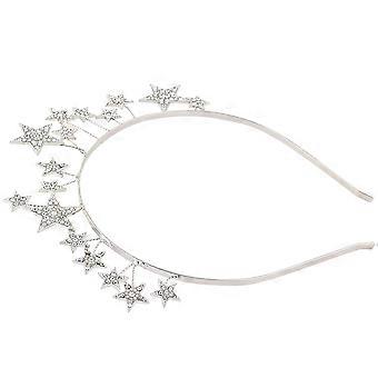 Silver Rhinestone Star Headband for Party Use with Design