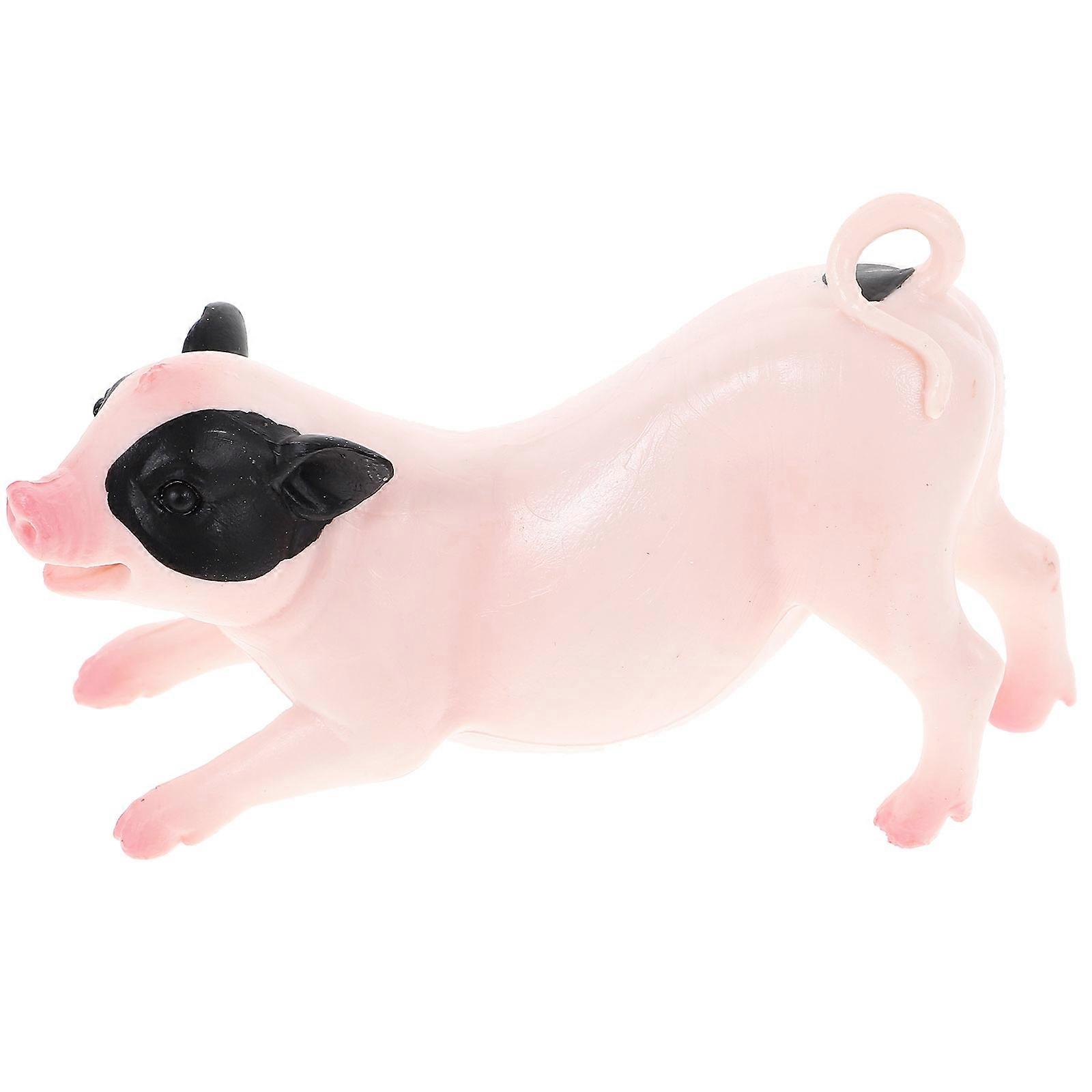Simulation Pig Model in Pink for Decor with 3Pcs Plastic Pig Figurines