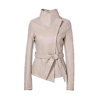 Spring- Faux Leather, Turn-down Collar, Short Slim, Jacket