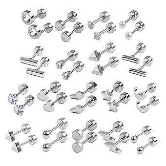Stainless Steel Stud Earrings Set Star Moon Heart for Women's