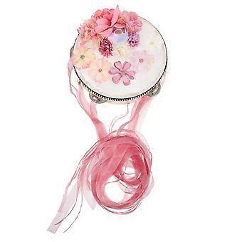 The **Silk Flower Tambourine with Streamers** is a vibrant and versatile musical instrument ideal for a variety of settings, especially in early