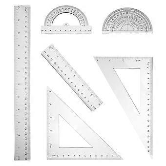 Transparent Geometry Ruler Set with Protractor and for School, Art, and Architecture Design