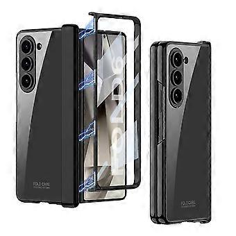 Transparent Plating Case for Samsung Galaxy Z Fold 6 Case with Screen Protector and Magnetic Hinge Protective,Full Protective Shockproof Anti Yellow C