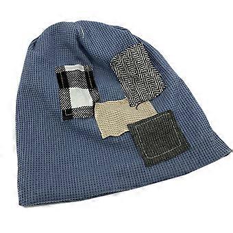 Trendy Patch Beanie Hat All-match Pullover Hat Knitted Hat Casual Confinement Cap Stretchable for Birthday Photo Studio Fog blue