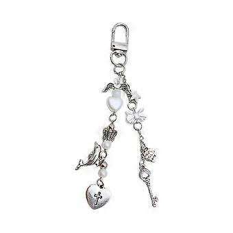 Sweet and Cool Heart Keychain with Guitar Bass and Bowknot Beautiful Keychains Unique Beaded Pendant Key Chain