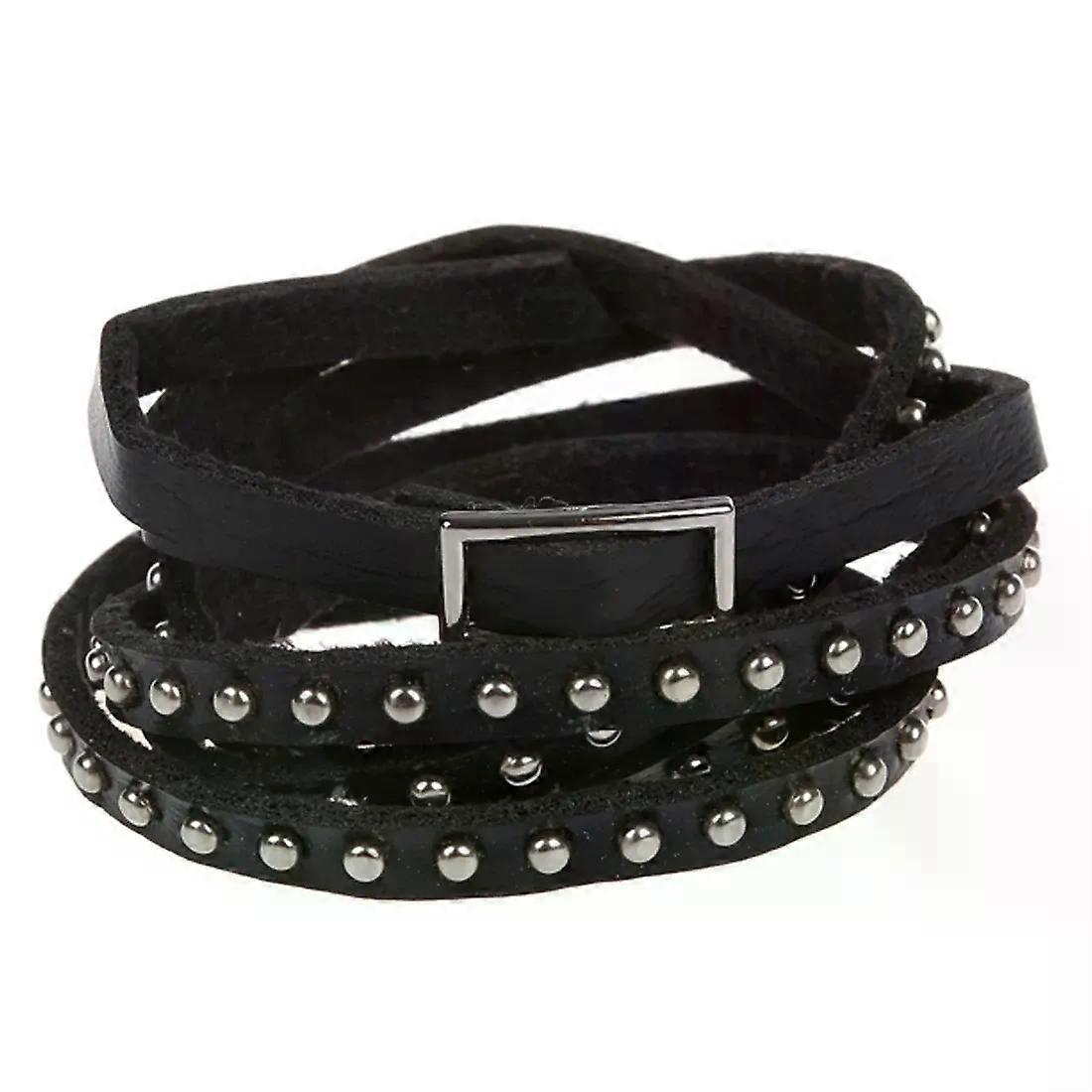 Unisex Punk Rock Multi-layer Rivet Stud Bracelet Bangle Wrap Cuff Black