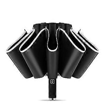 Upf 50+ Reverse Folding Umbrella Travel Windproof 99% Uv Protection Umbrellas With Reflective Safety Strip-Yvan