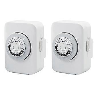US Plug, 24-Hour Cycle Plug-in Mechanical , Programmable Timer for Electrical Outlets, 30-Minute Intervals, 2Pack