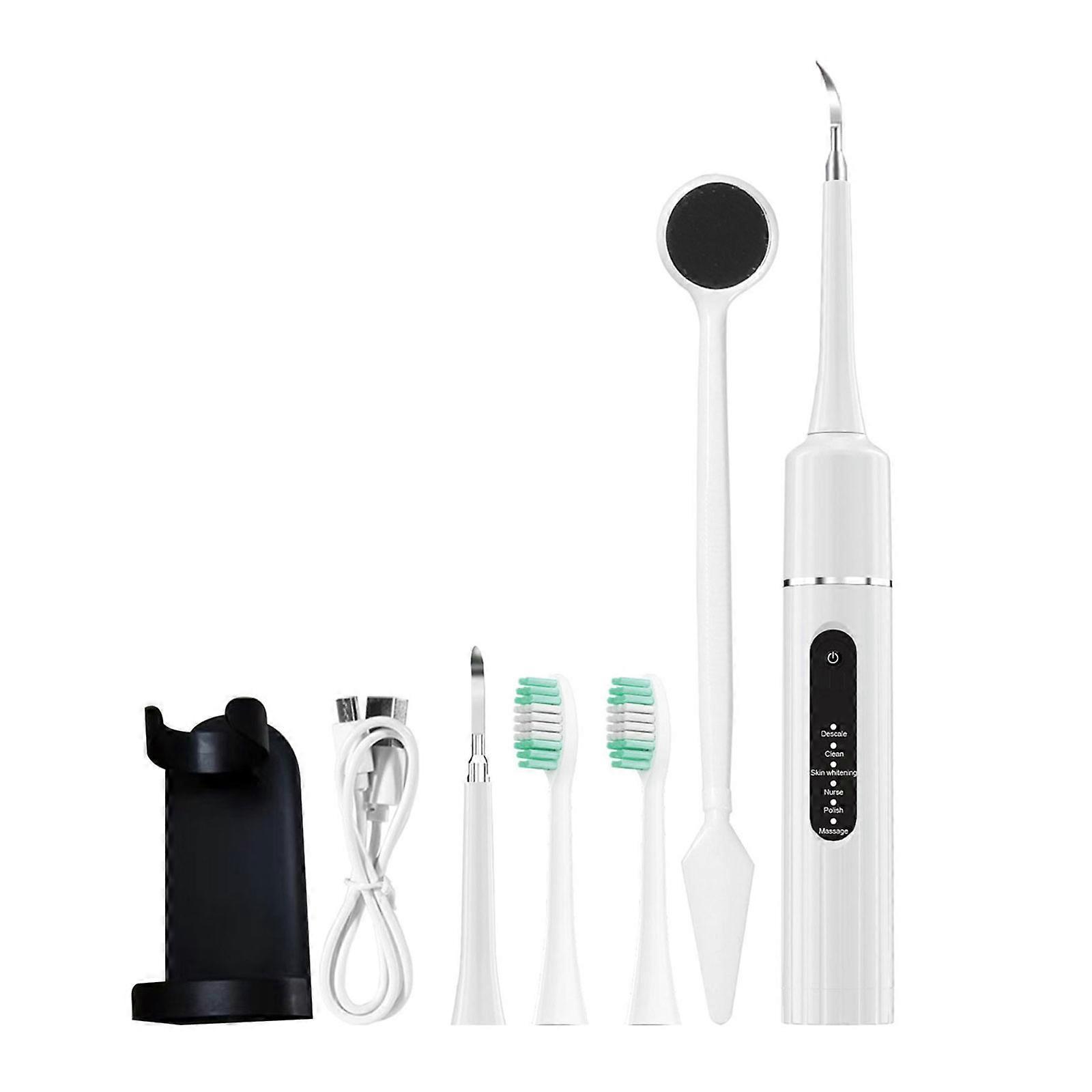 USB Rechargeable Dental Cleaner Waterproof Dental Cleaner Intelligent High Frequency Vibration Dental Cleaner for Teeth White