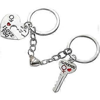Valentine's Day Keychain Heart Pendant Matching Couples Accessory 2Pairs