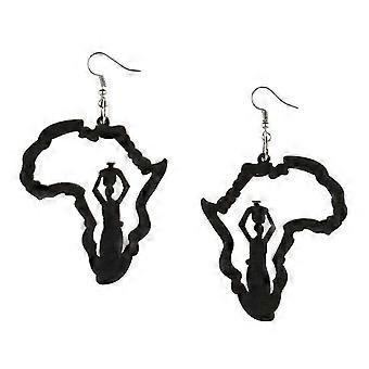 Vintage Ethnic Wooden African Map Tribal Drop Earrings for Women's