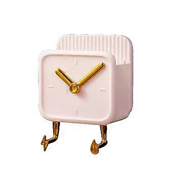 Wall Mounted Storage Box PP Clock Shaped Multifunctional Container with Hooks for Dormitory Bedside