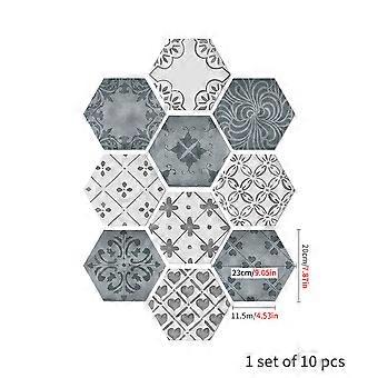 Waterproof Hexagonal Tile Sticker Floor Decal Self Adhesive Non-slip for Home Decoration Heart Pattern 23X10 Cm 10Pcs