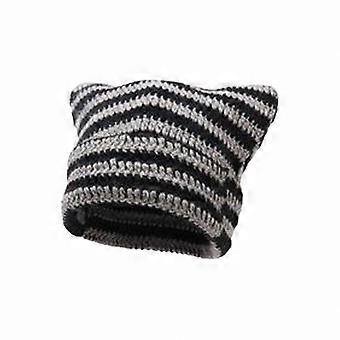 Winter Knitted Beanie Hat with Cat Ears and Striped Design for Women