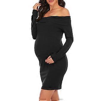 Woman'S One Word-Collar Long Sleeve Solid Color Maternity Elegant