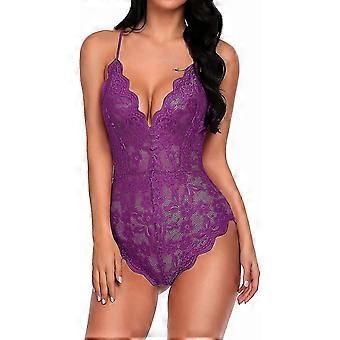 Women's Alluring Lace Bodysuit - Elegant One-Piece Undergarment with Deep V Design