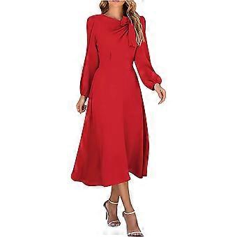 Women's Plus Size Solid Color Round Neck A-line Long Sleeve Midi es S-2xl