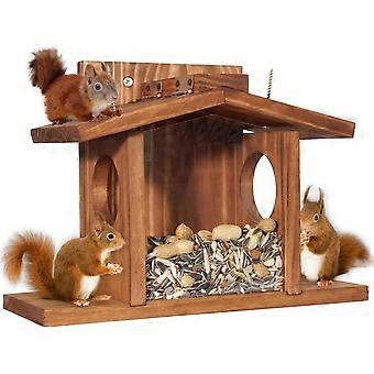 Wood Squirrel Feeder, Squirrel Feeders for Outside Winter, Wooden Chipmunk Feeder for Corn, Peanuts, Durable Box Easy to Fill with Removable Front Pan
