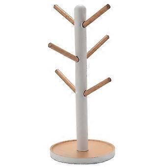 Wooden Mug Hanging Display Rack Drinkware Shelf with 6 Hooks Tree Shape Wood Coffee Tea Cup Storage JN
