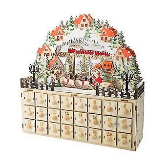 Yuletide Wood Cabinet Shape Advents Calendar with 24 Drawers and LED Scene