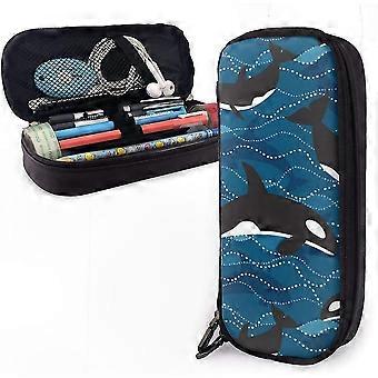 Zippered Leather Pencil Case with Ocean Orca Design for School and Office Storage Solutions